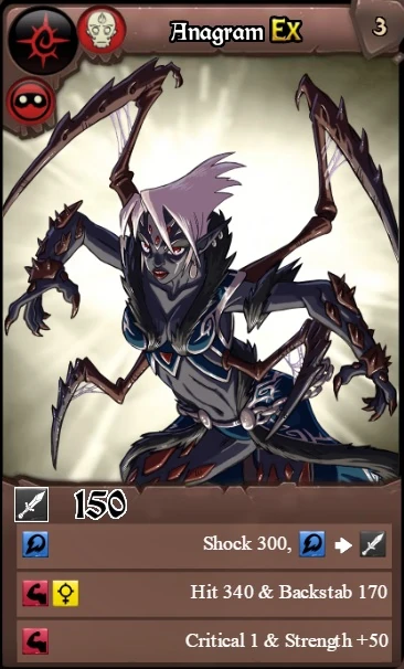 - Hit / Backstab combo that grows stronger from her Criticals and works to slowly cripple Strength users